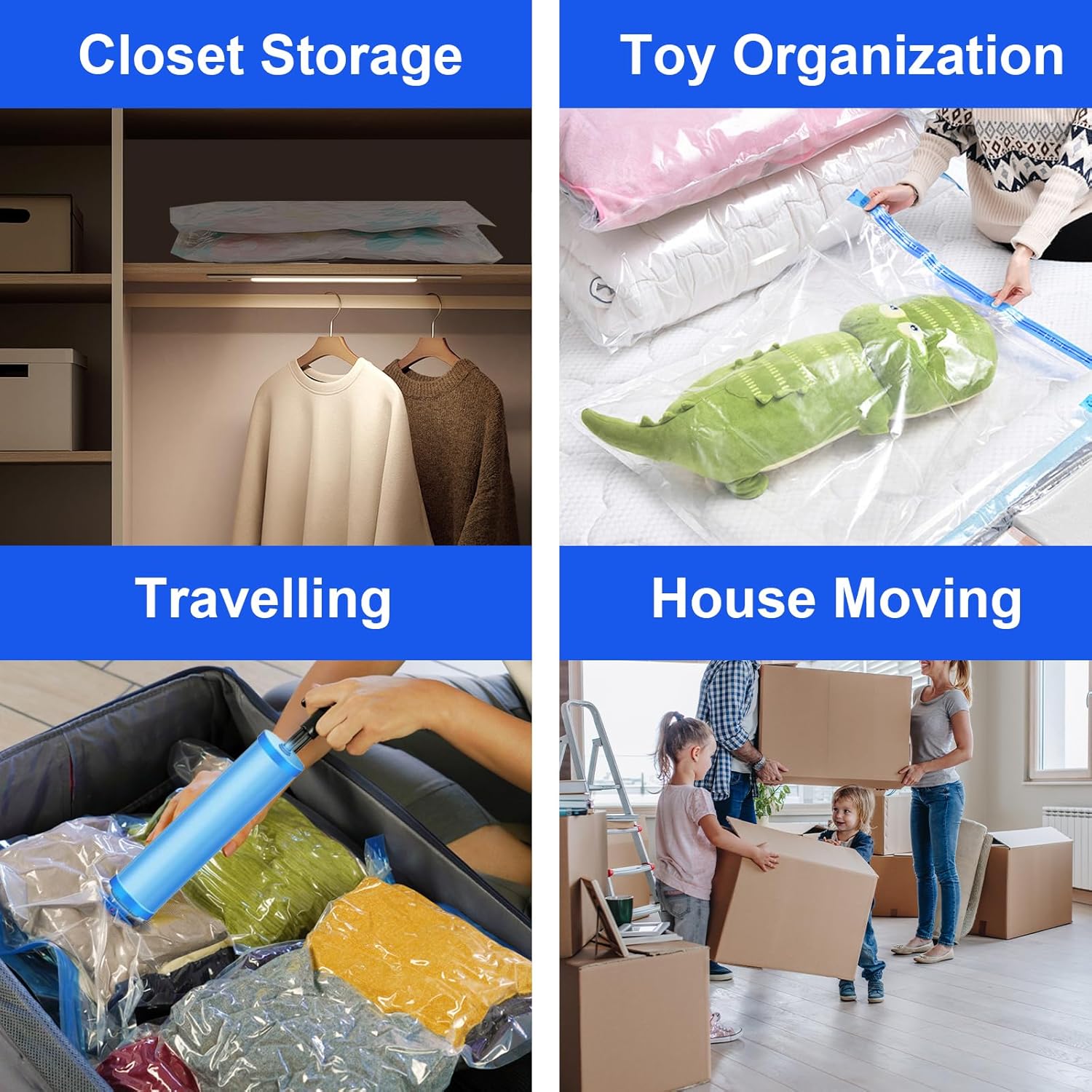 Vacuum Storage Bags with Hand Pump – 8-Piece Space Saver Set